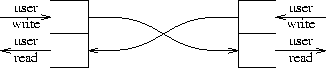 At the end of the stream closest to the process is a set of routines that provide the interface to the rest of the system. A user's write and I/O control requests are turned into messages sent along the stream, and read requests take data from the stream and pass it to the user. At the other end of the stream is either a device driver module, or another process. Data arriving from the stream at a driver module is transmitted to the device, and data and state transitions detected by the device are composed into messages and sent into the stream towards the user process. Pipes, which are streams connecting processes, are bidirectional; a writer at either end generates stream messages that are picked up by the reader at the other.